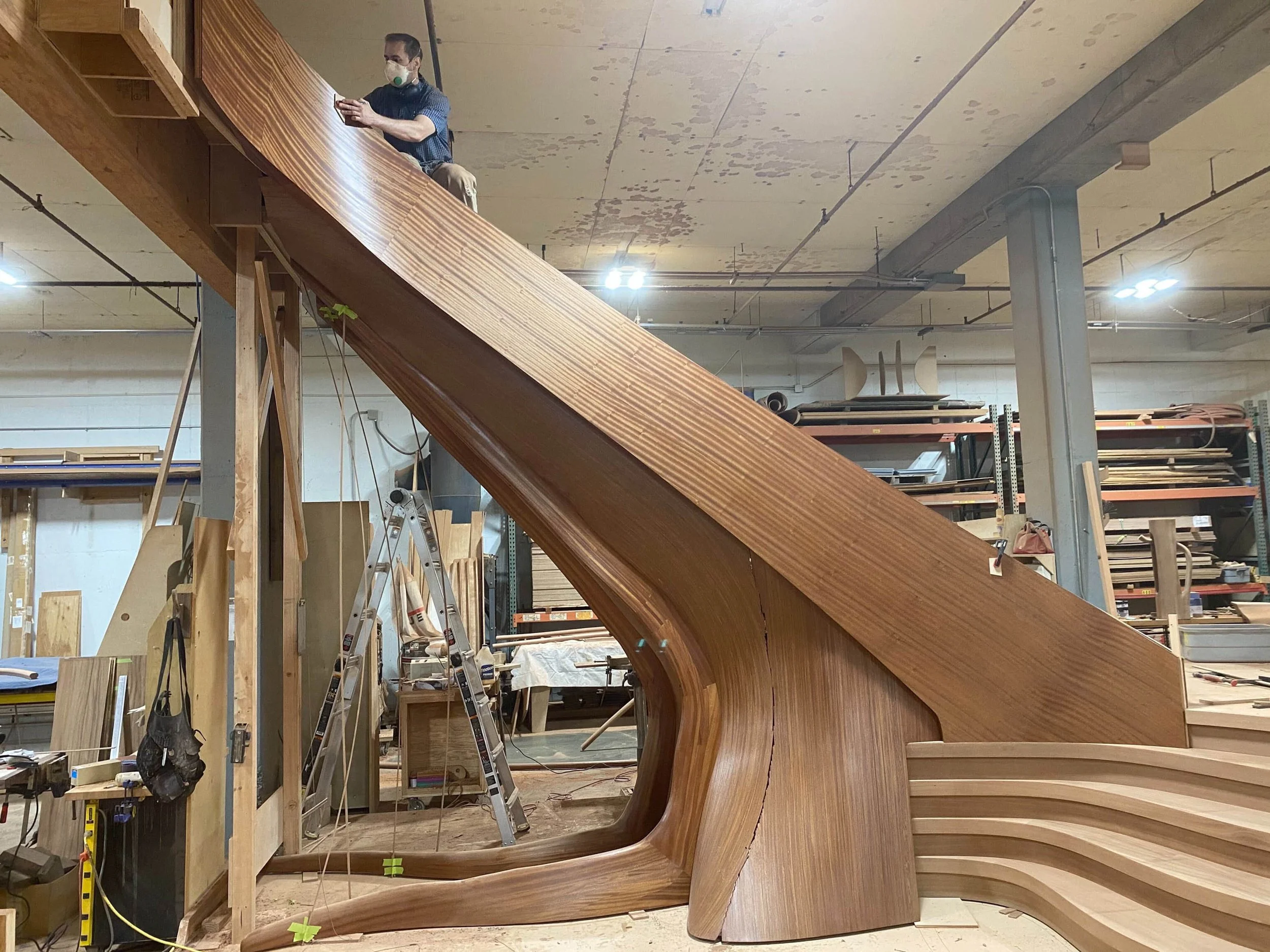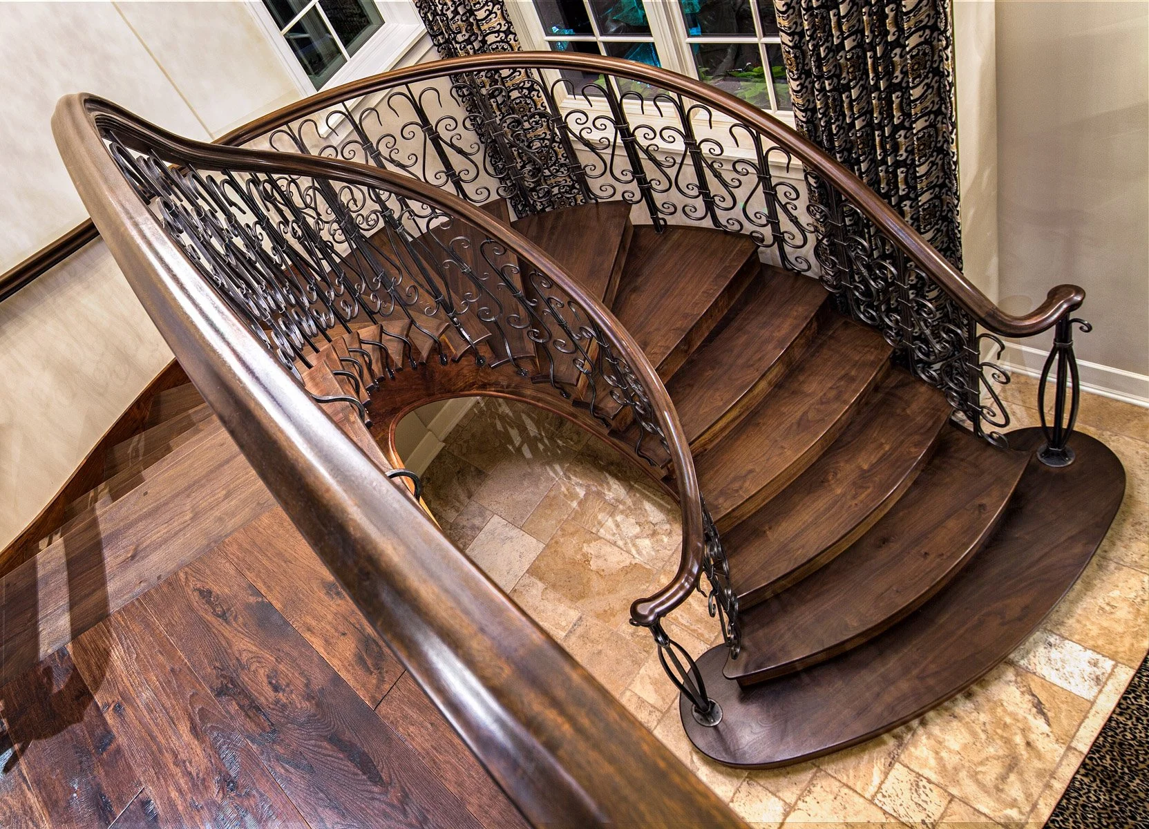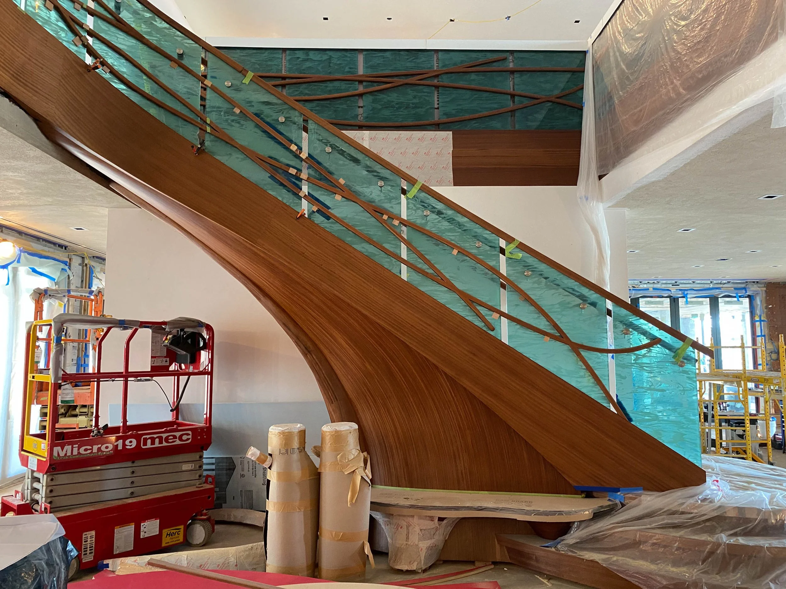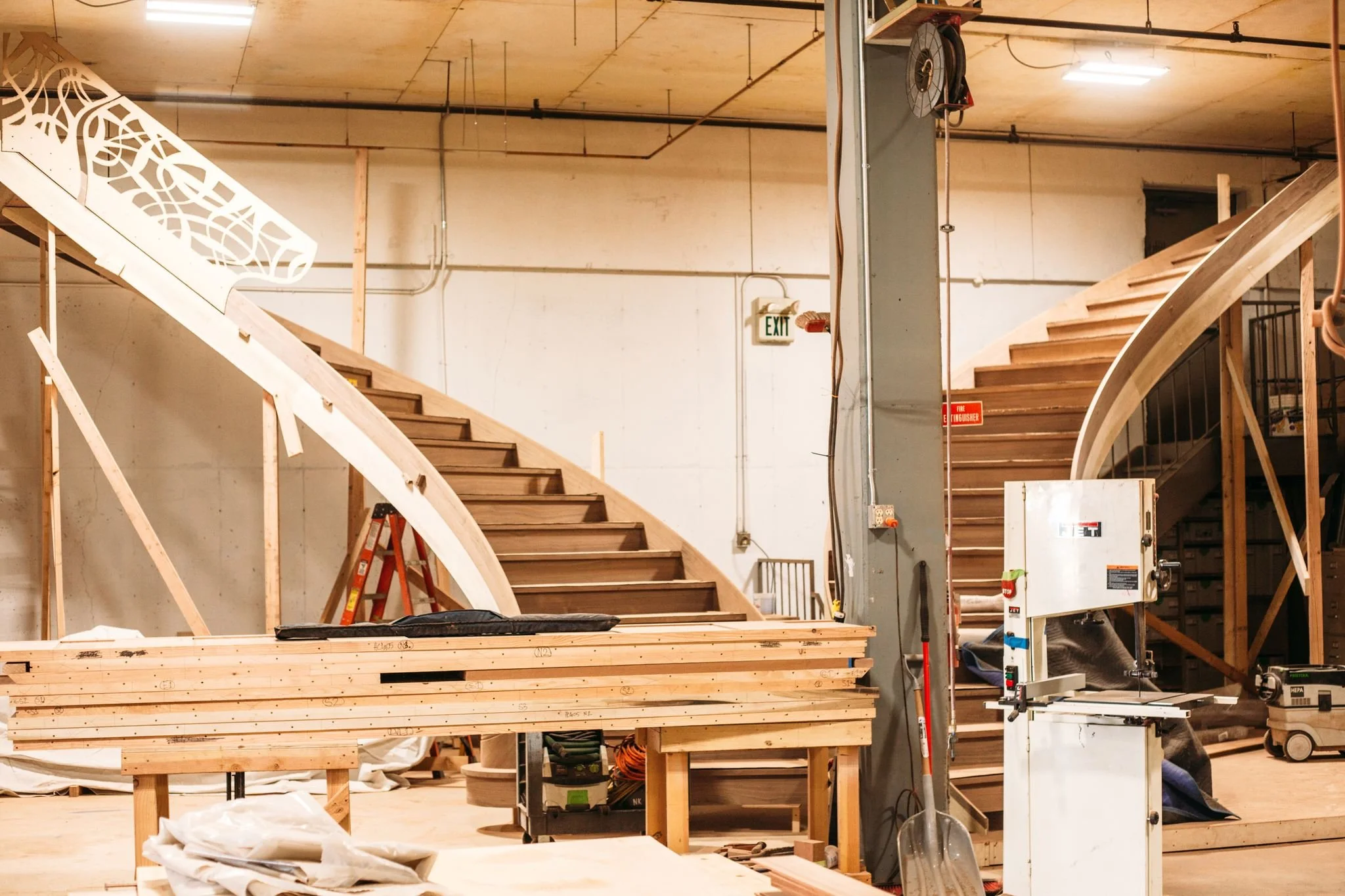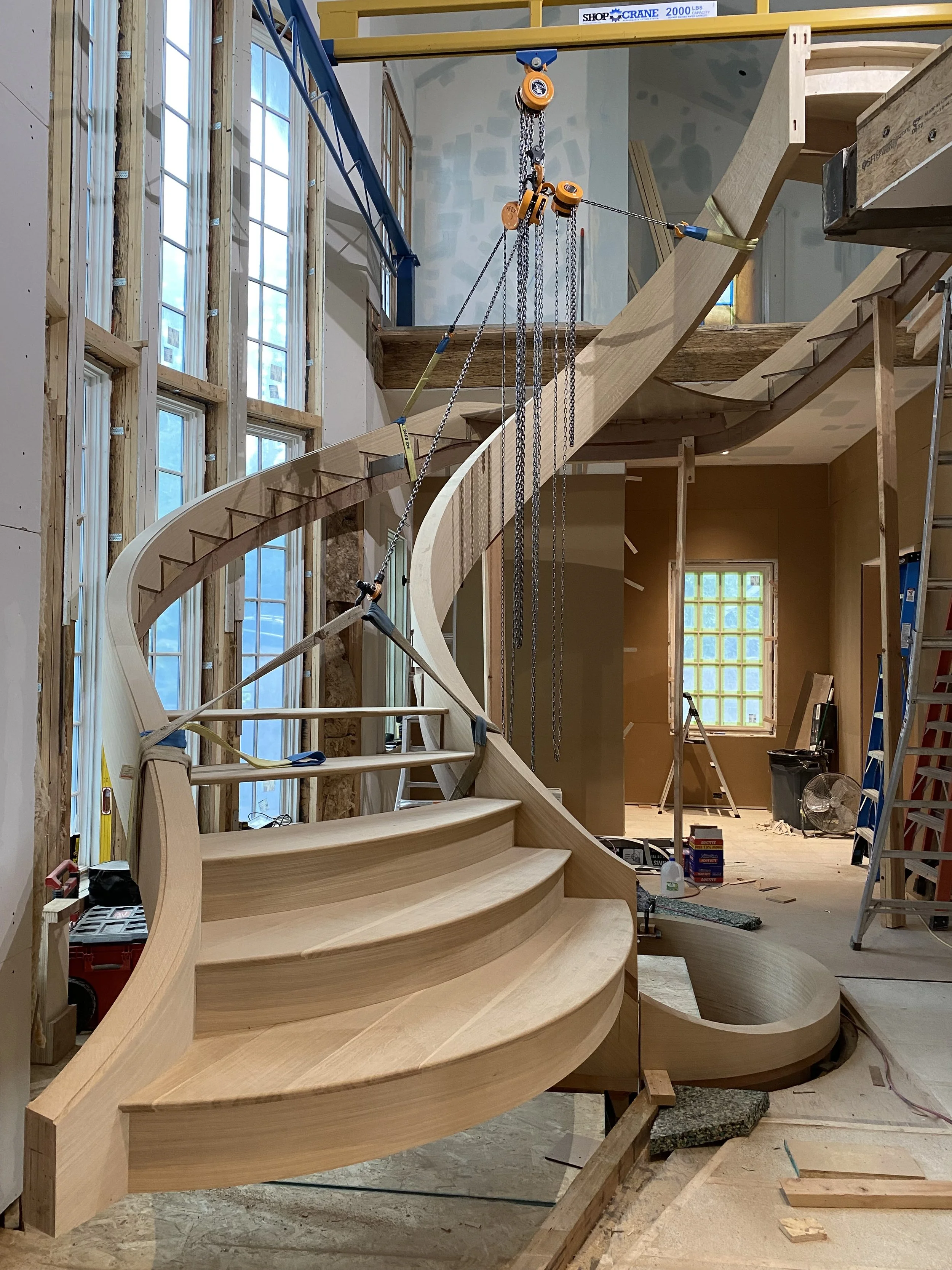 making large floating curved and elliptical stairs, circular staircases made of many different materials, hardwoods, bronze, glass, & steel.