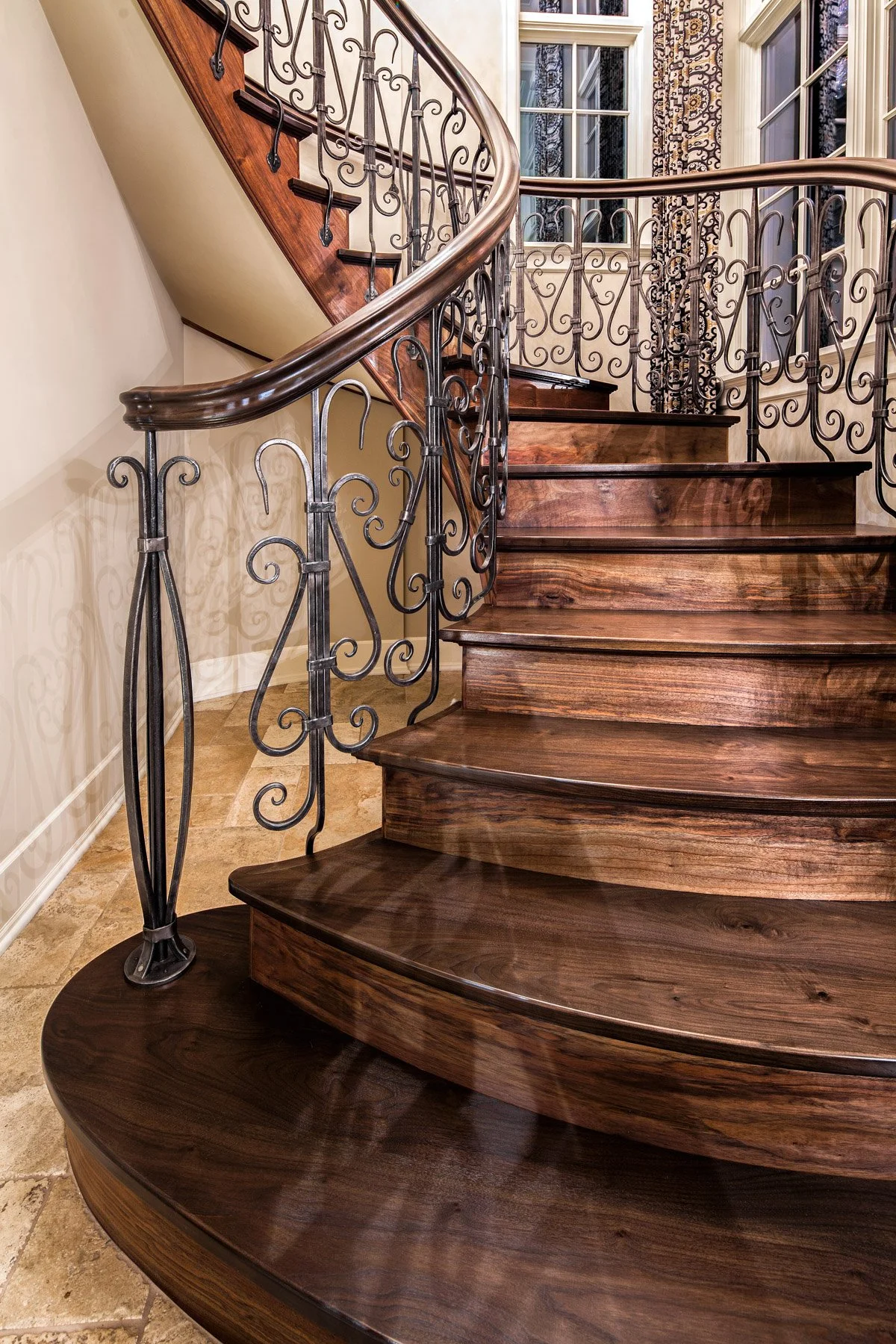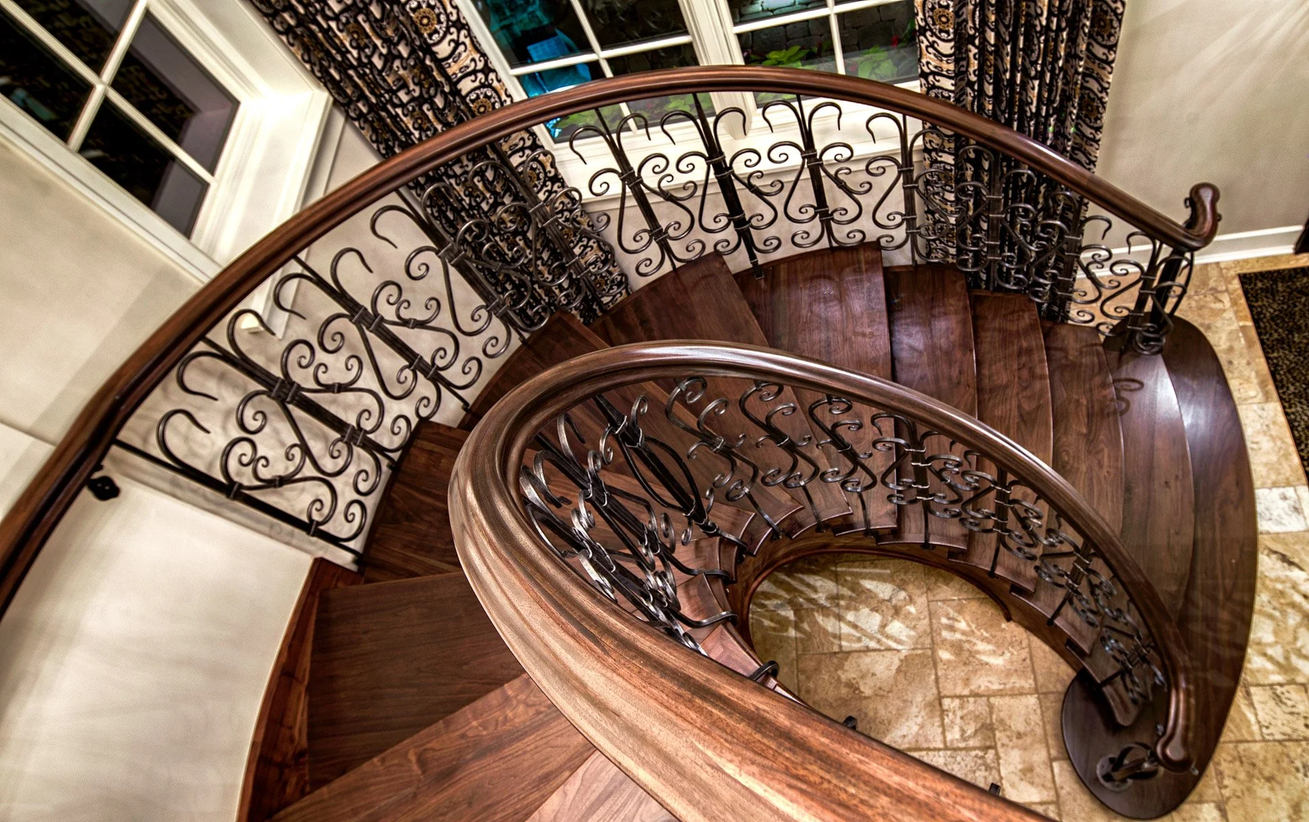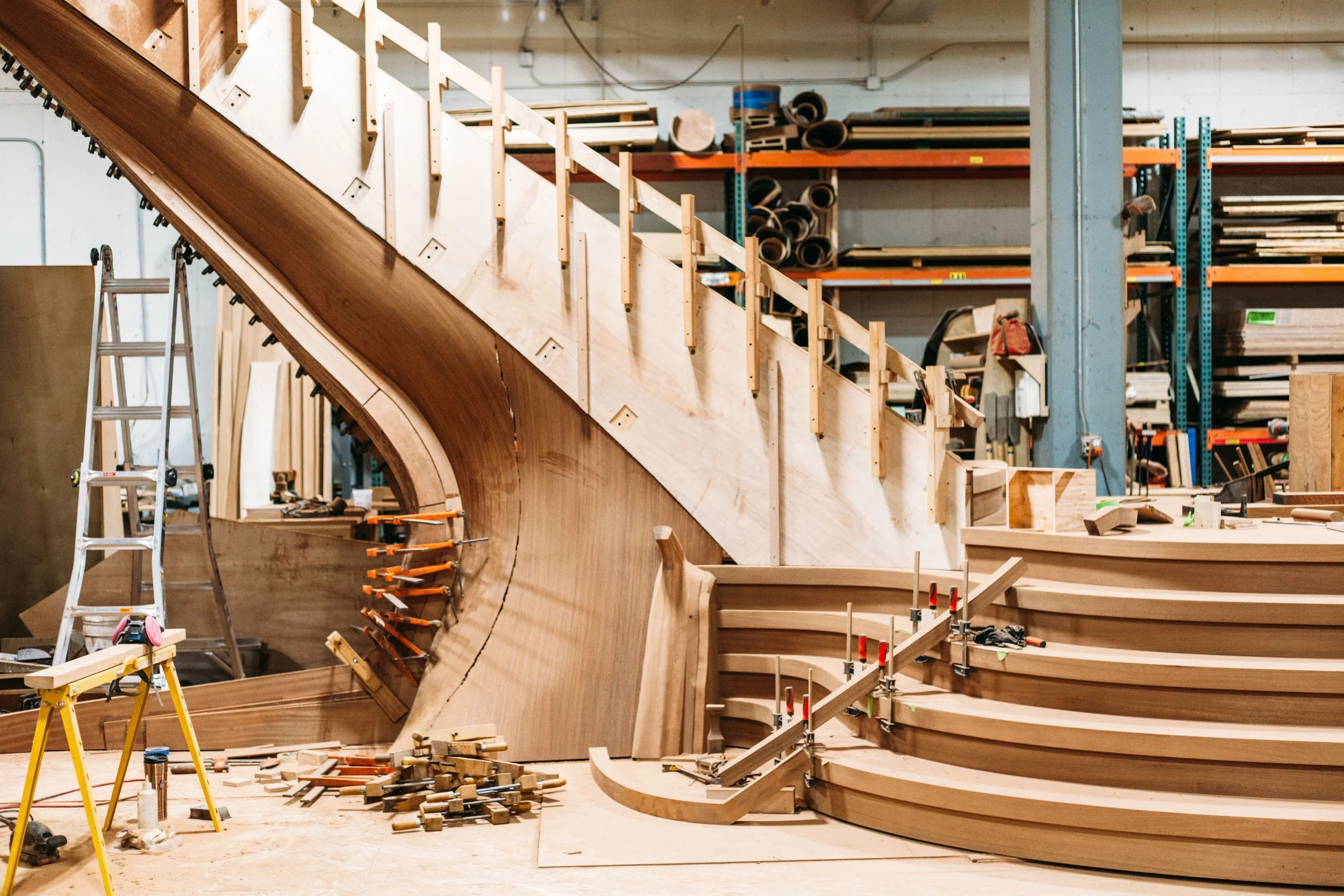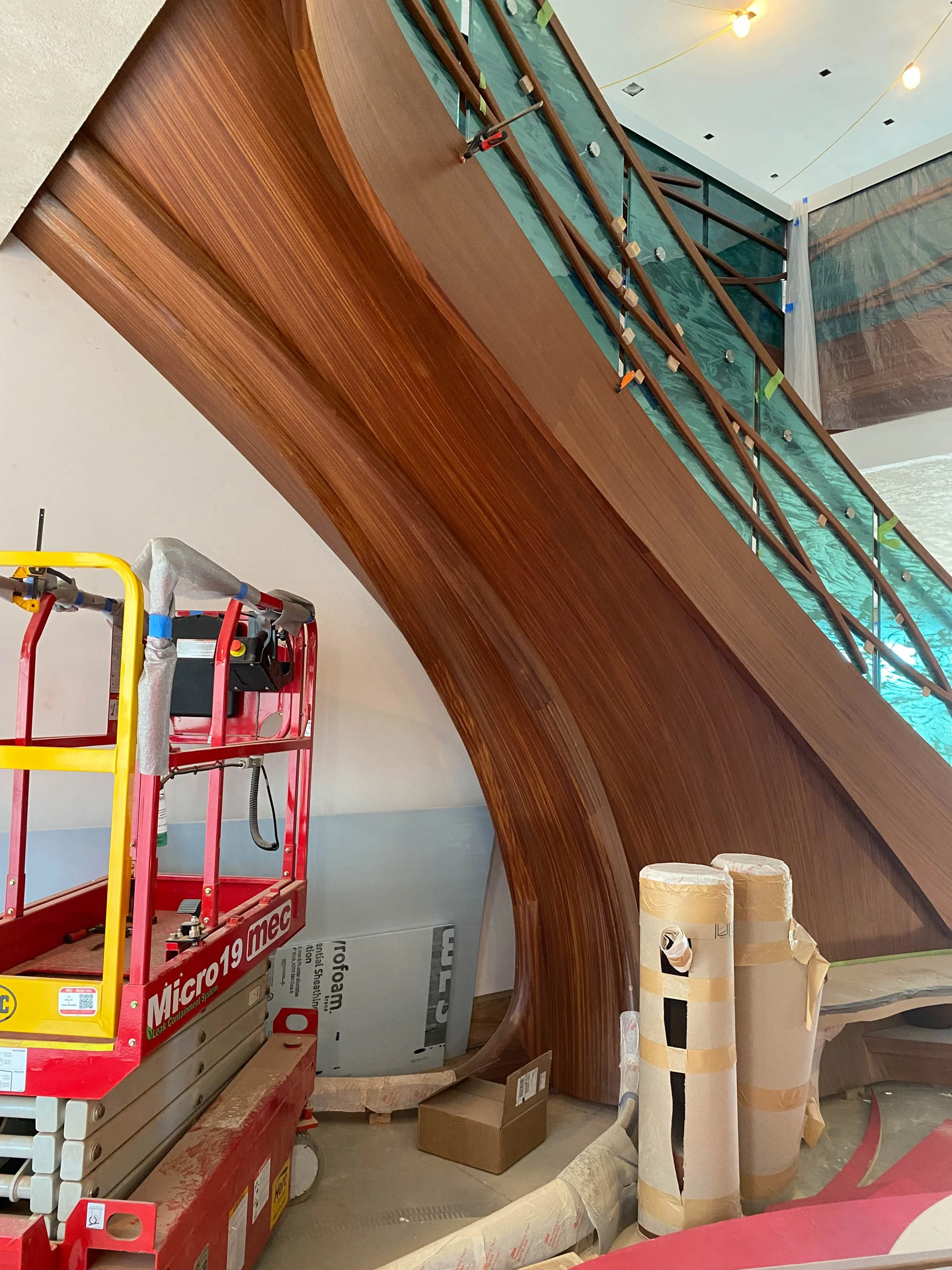 making large floating curved and elliptical stairs, circular staircases made of many different materials, hardwoods, bronze, glass, & steel.
