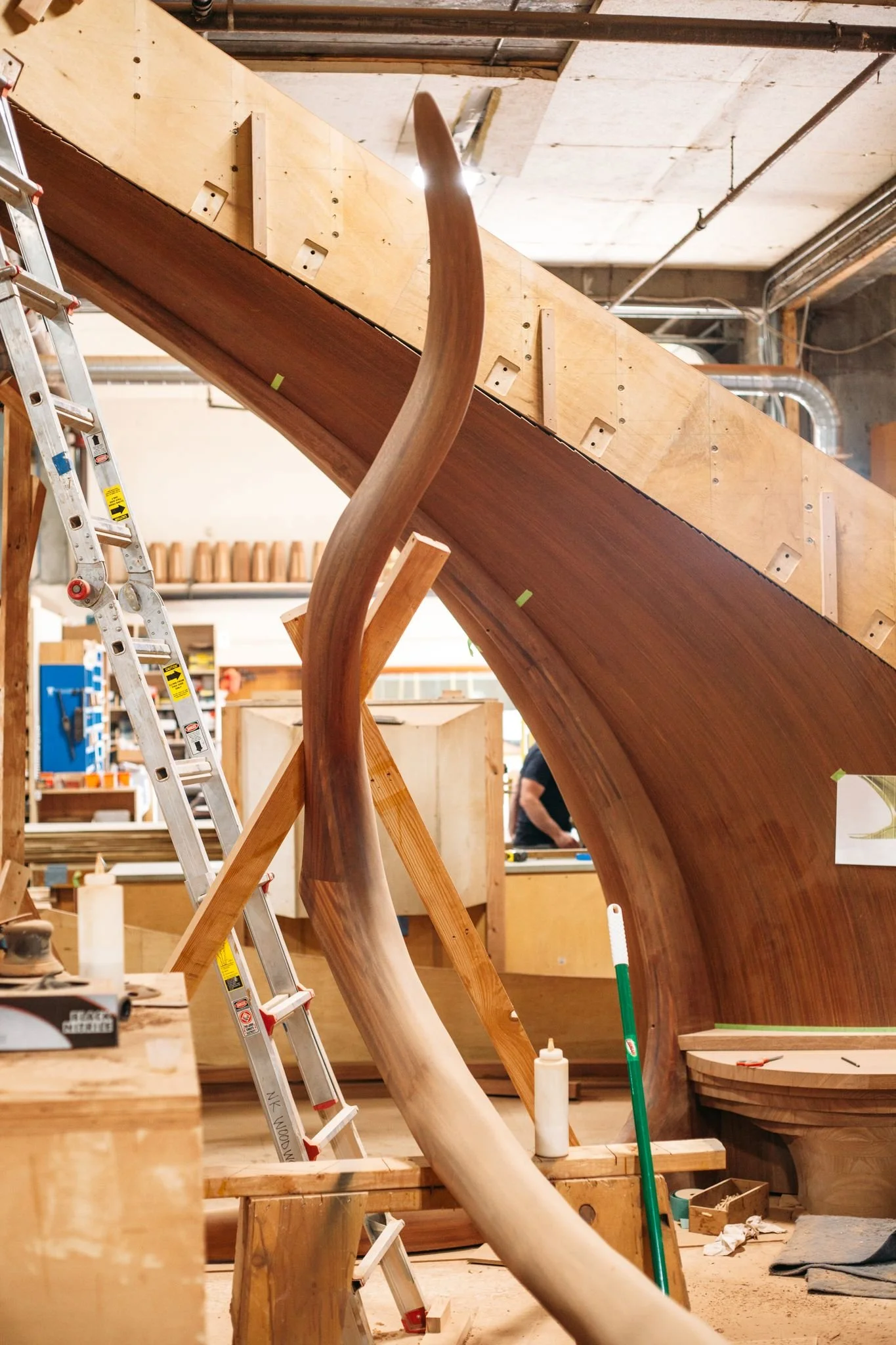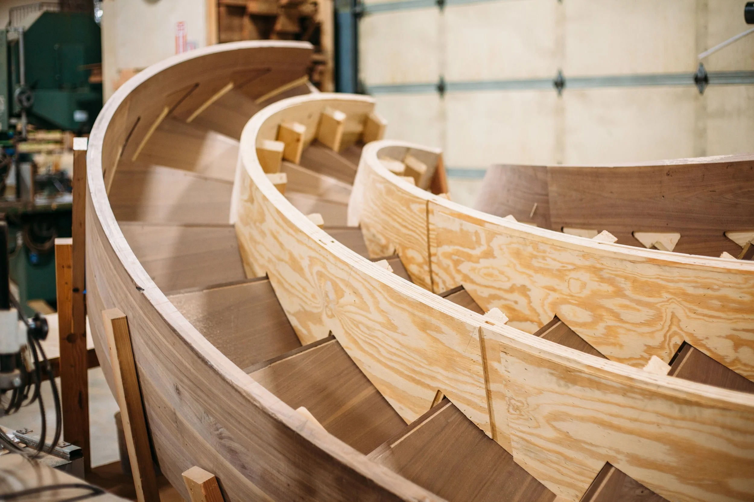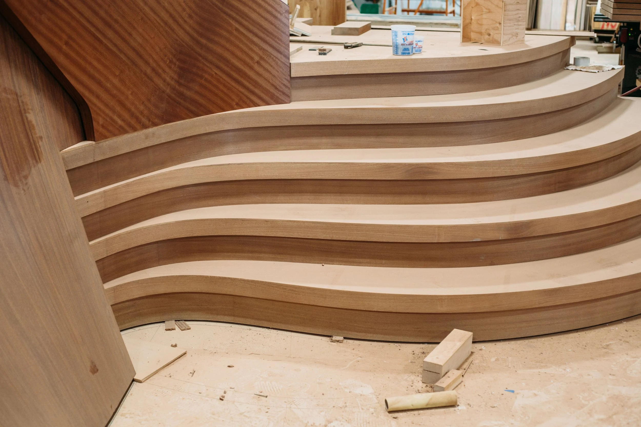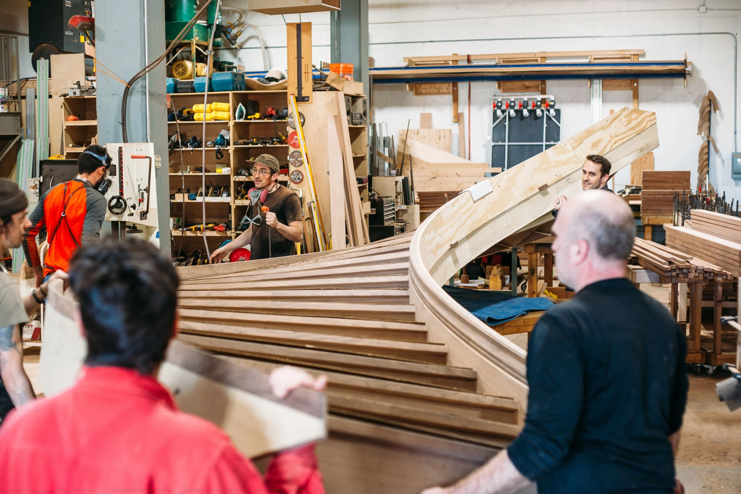 making large floating curved and elliptical stairs, circular staircases made of many different materials, hardwoods, bronze, glass, & steel.